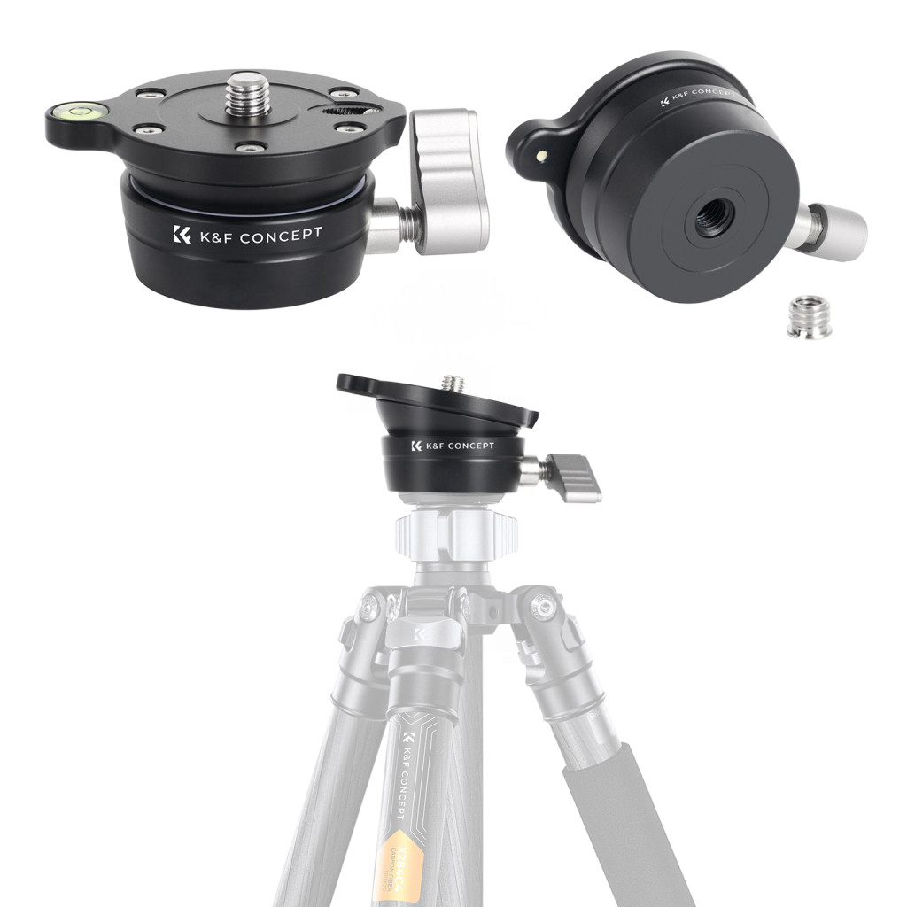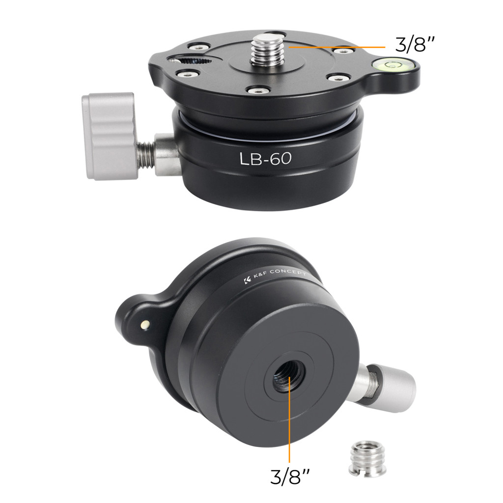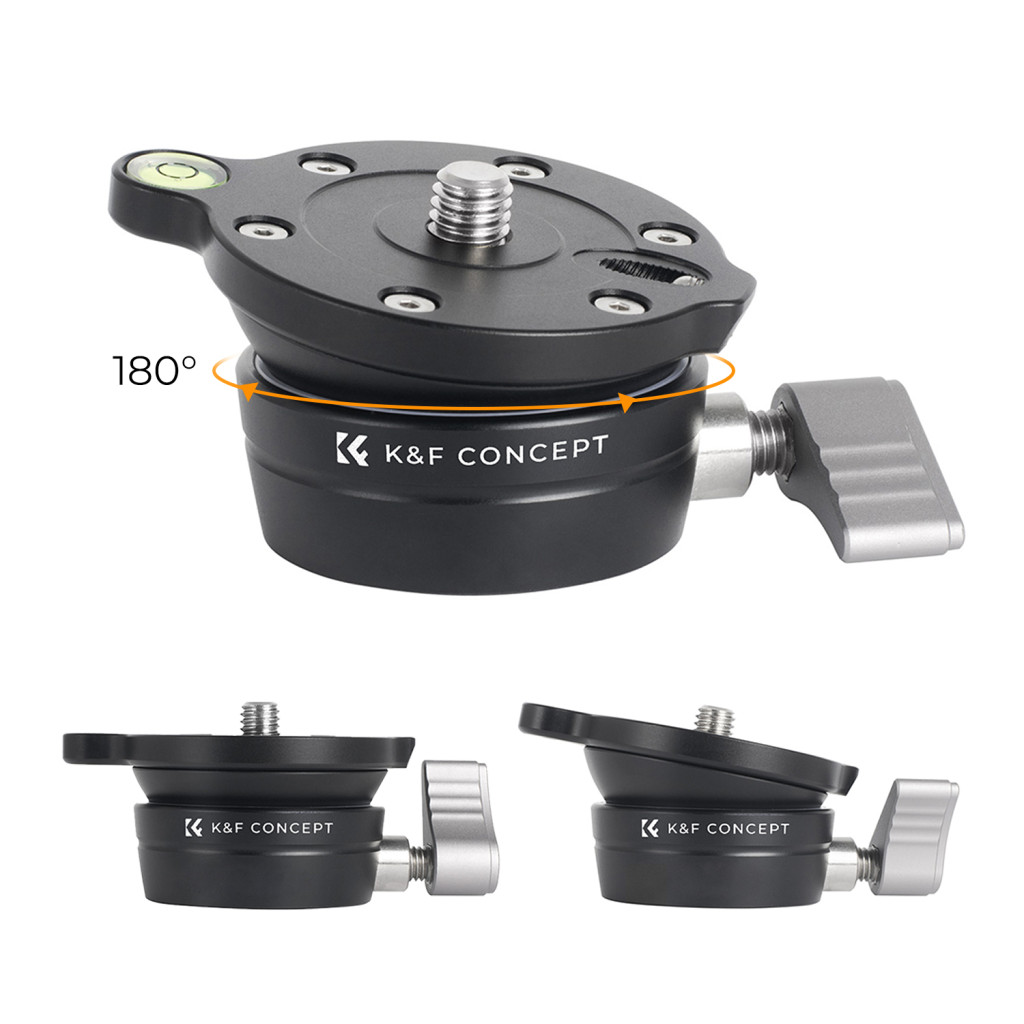 K&F Concept LB-60 panoráma állvány fej, 10kg teherbírás, 3/8"-os csatlakozás, vízszintjelző (KF-31-102)