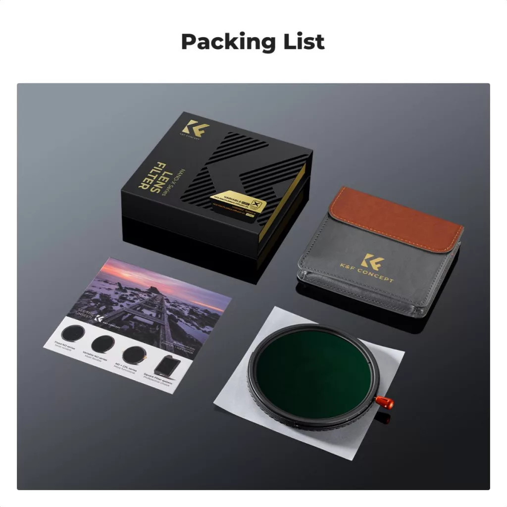 "W/o black cross": Kialakításának köszönhetően a legtöbb változtatható ND szűrőknél előforduló X-alakú torzulás teljesen kiküszöbölt.