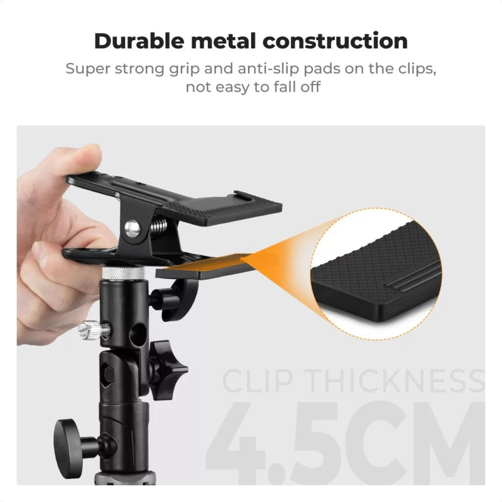 A K&F Concept reflektor tartó konzol egy erős és megbízható kiegészítő, amely ideális reflektorok, derítőlapok és egyéb világítási eszközök stabil rögzítésére. A strapabíró fém kialakítás biztos tartást nyújt, így stúdióban és kültéri használat során egyaránt megbízható megoldást kínál. A csipeszes rögzítés gyors és egyszerű használatot tesz lehetővé, így a reflektor könnyedén pozicionálható a kívánt irányba.