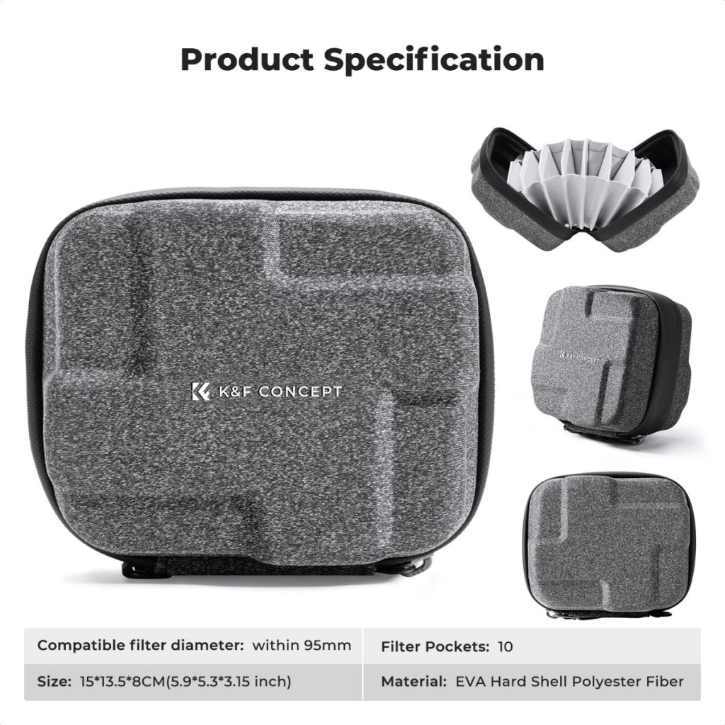 K&F Concept szűrőtartó kemény tok, 10db szűrő számára, max 82mm (KF-13-185)