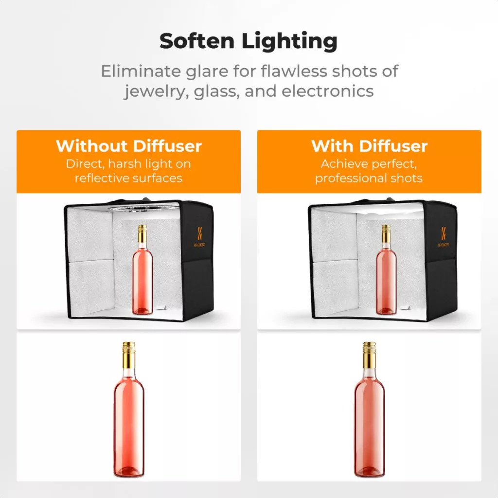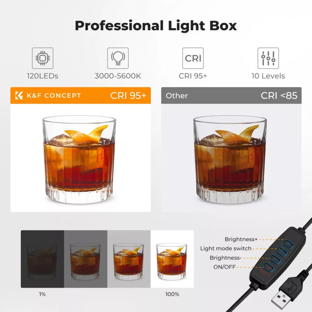 A K&F Concept fénydoboz lehetővé teszi, hogy stúdió minőségű termékfotókat készítsen akár otthon is. Az egyenletes világítás és a cserélhető hátterek segítenek kiemelni a termék részleteit, míg a kompakt és hordozható kialakítás kényelmes használatot biztosít bárhol. Ideális eszköz mindenki számára, aki igényes képeket szeretne készíteni termékeiről.