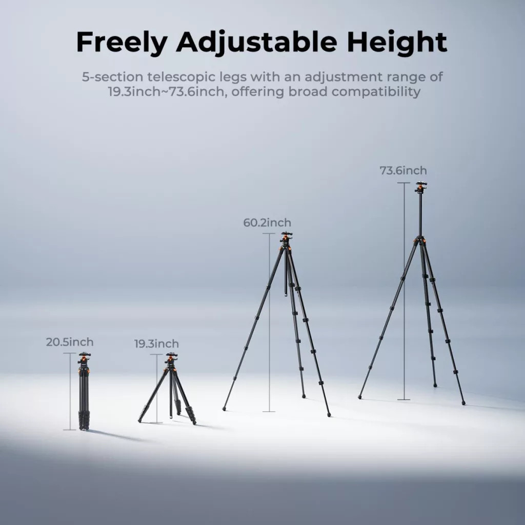 A K&F Concept 185 cm tripod kiváló megoldás mindazok számára, akik egy stabil, mégis könnyen hordozható állványt szeretnének. A nagy magasság és a széles kompatibilitás lehetővé teszi a kreatív felvételek készítését különböző helyzetekben, míg az egyszerű kezelhetőség kényelmes használatot biztosít mindennapokban és utazás során.