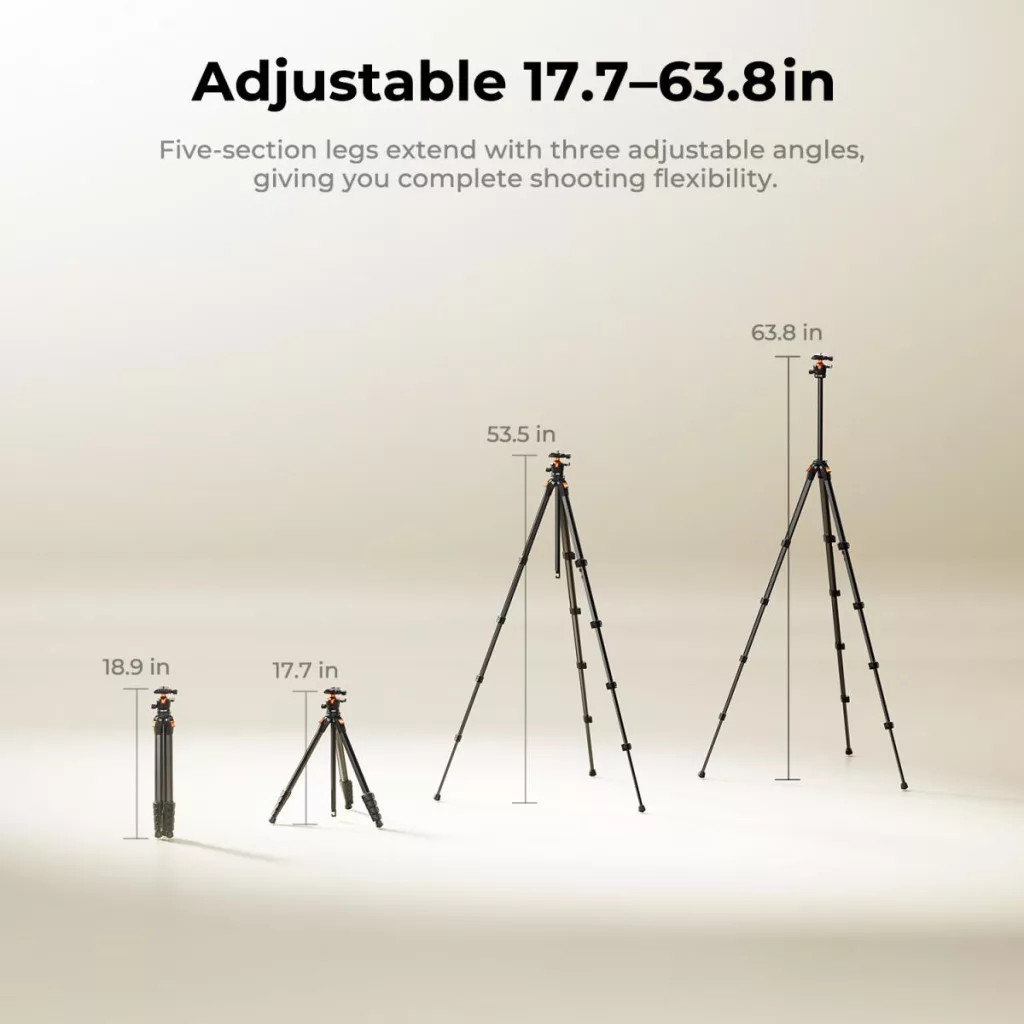 A K&F Concept 63" tripod kiváló megoldást kínál azok számára, akik egy könnyen hordozható, mégis stabil állványt szeretnének. Az Arca kompatibilis gömbfej gyors és precíz beállítást tesz lehetővé, míg a kompakt kialakítás ideálissá teszi utazáshoz. Segítségével könnyedén készíthet éles, bemozdulásmentes felvételeket bármilyen környezetben.