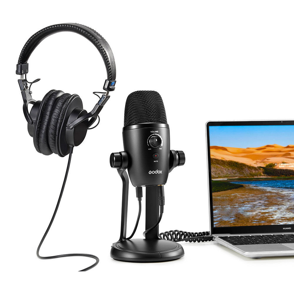The Godox UMic82 has a built-in grille to reduce pops from vocal plosives, a gain knob to optimise microphone level and a mute button to interrupt the microphone signal between performances or sections. The microphone also has a 3.5mm headphone jack for easy real-time monitoring of audio signal