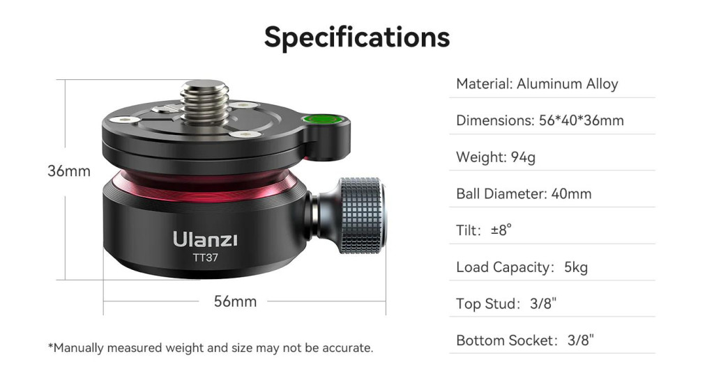 Az Ulanzi TT37 Szintező Bázis egy kiváló minőségű, precíziós eszköz, amelyet kifejezetten a fényképezőgépek és videokamerák szintbe állításához terveztek. Ez a szintező bázis gyors és egyszerű beállítást tesz lehetővé, így biztosítva a tökéletes vízszintes helyzetet a felvételek során.