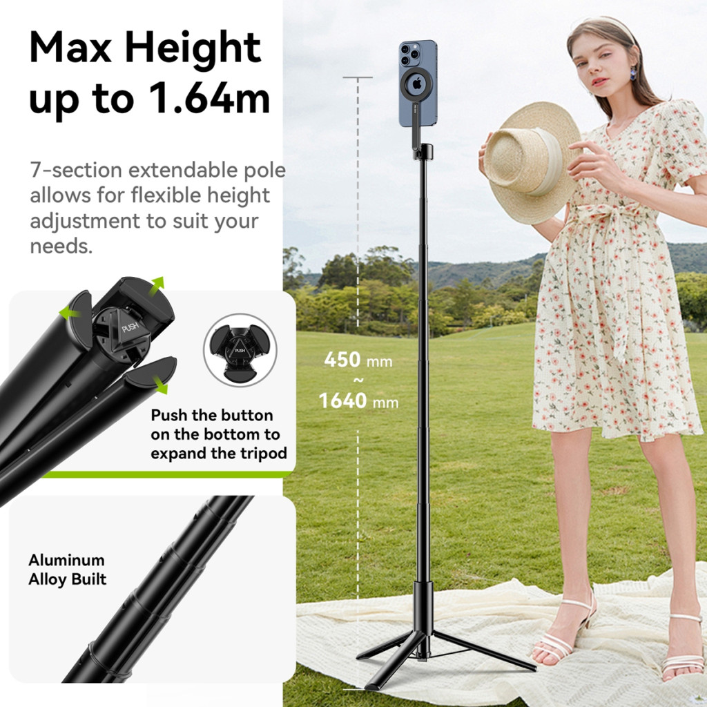 Ulanzi Magnetic Selfie Stick Max állvány, 164 cm selfie állvány, Magsafe telefon adapter, bluetooth (UL-M001B)