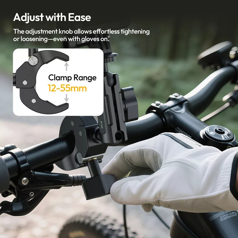 • Univerzális Y Super Clamp kialakítás: erős szorítós mechanizmus, amely biztonságosan rögzíthető 12-55 mm átmérőjű csövekre, rudakra és vázrészekre.