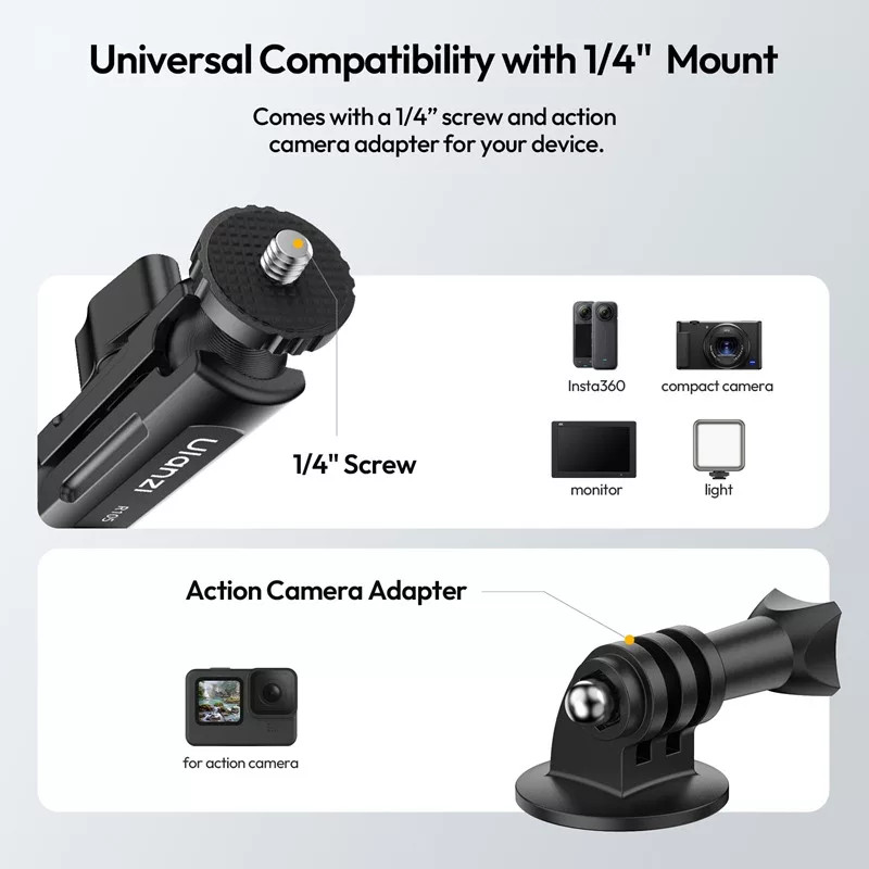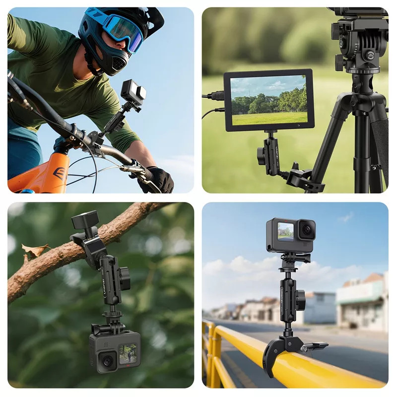 • Sokoldalú felhasználás: alkalmas akciókamerák, LED lámpák, mikrofonok, monitorok vagy egyéb kiegészítők rögzítésére.