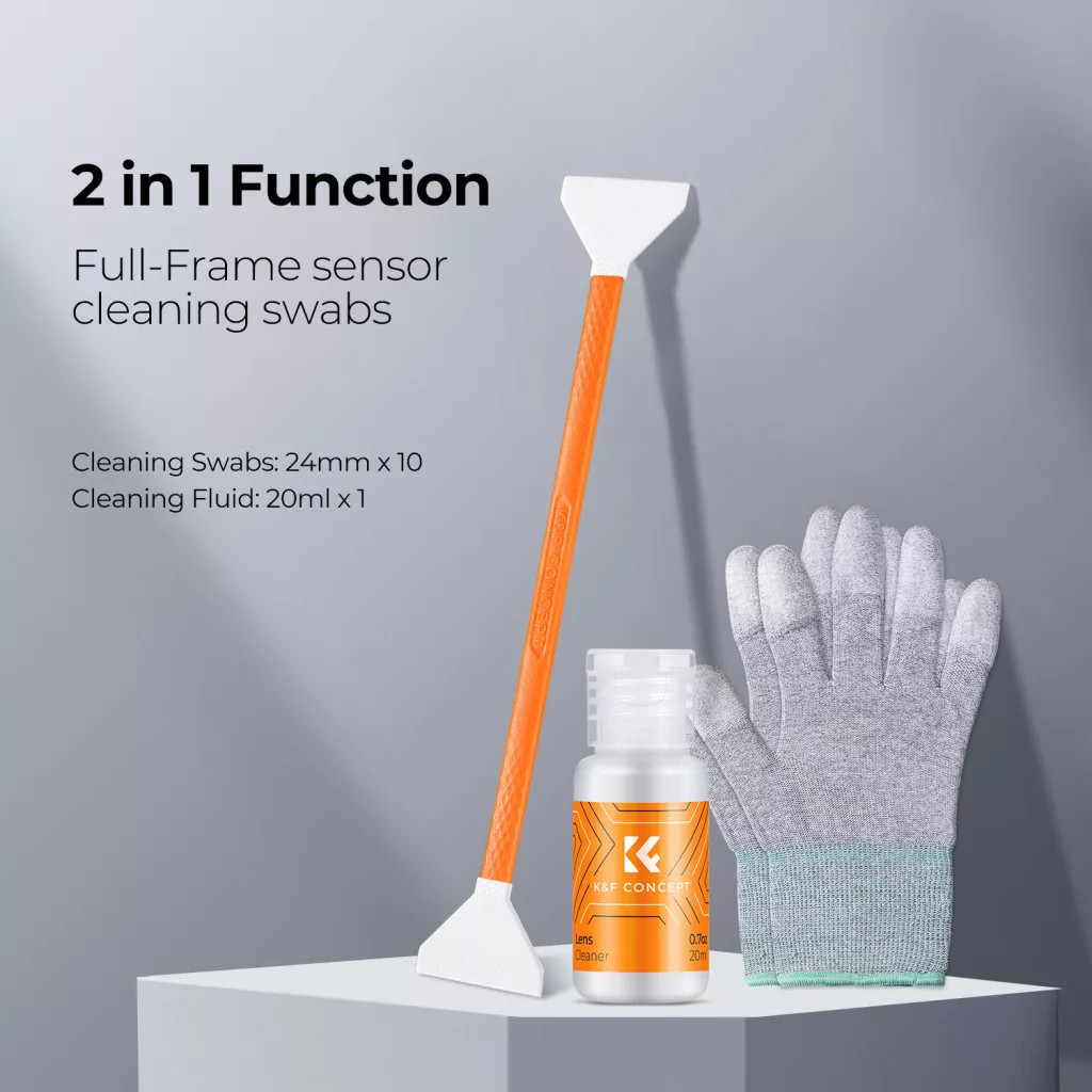 - Dupla Fejes Tisztítópálca: A 24 mm-es tisztítópálca kifejezetten a Full Frame szenzorokhoz lett tervezve, biztosítva a hatékony tisztítást.
