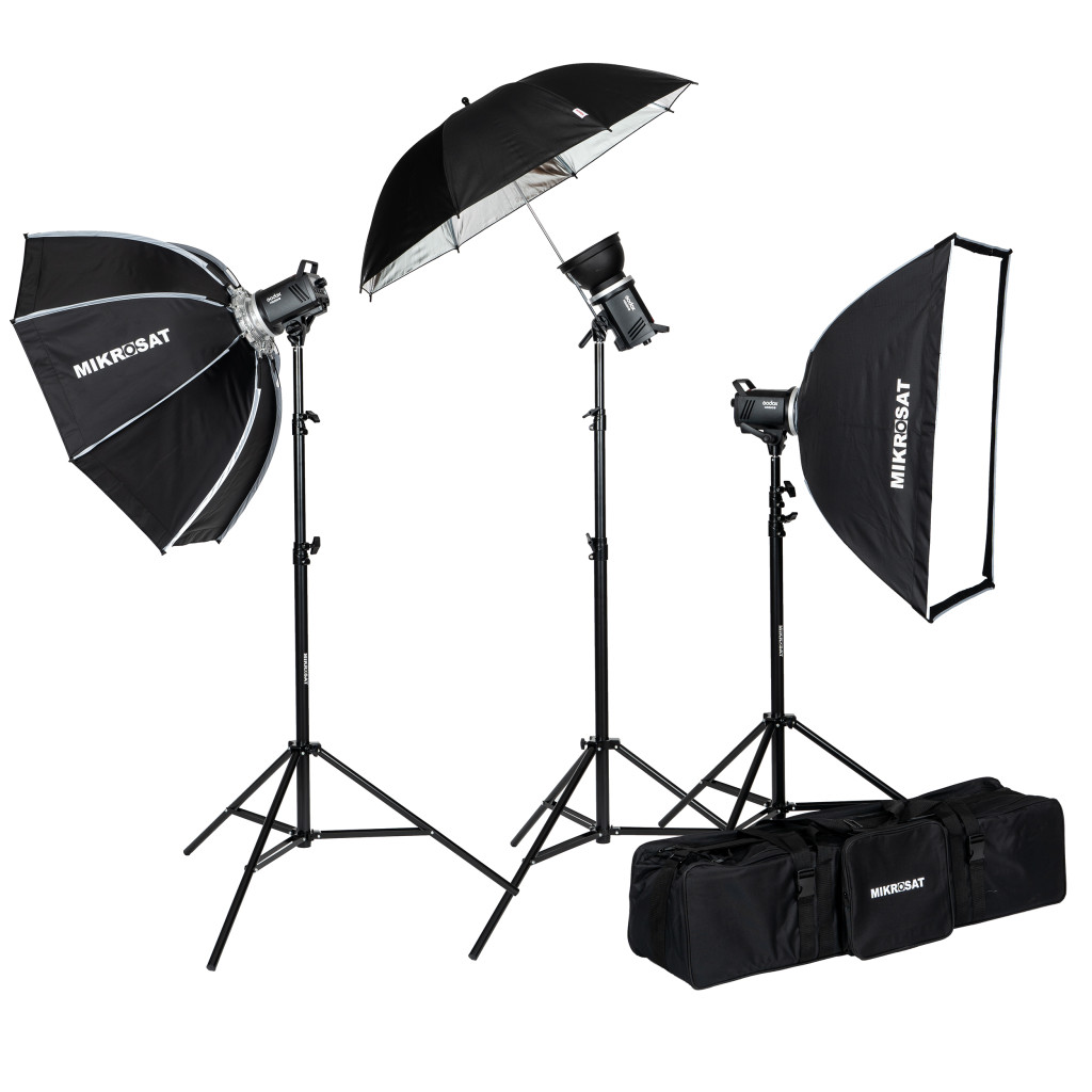 Godox MS300II-V Tripla beltéri Vakuszett Mikrosat Clicks Softboxal és ernyővel(3 x 300Ws)