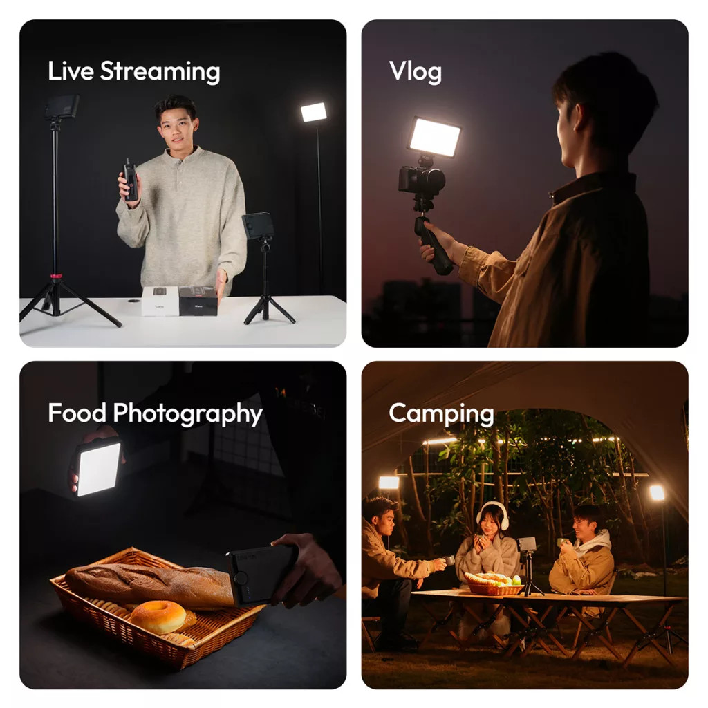 Tartalomkészítőknek, vloggereknek, stúdiófotósoknak és bárkinek, aki kompakt, vezeték nélküli fényforrást keres, amely könnyen mozgatható és kreatívan elhelyezhető bármilyen felületen.