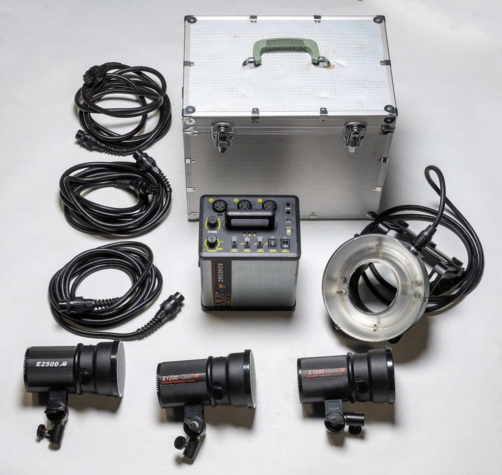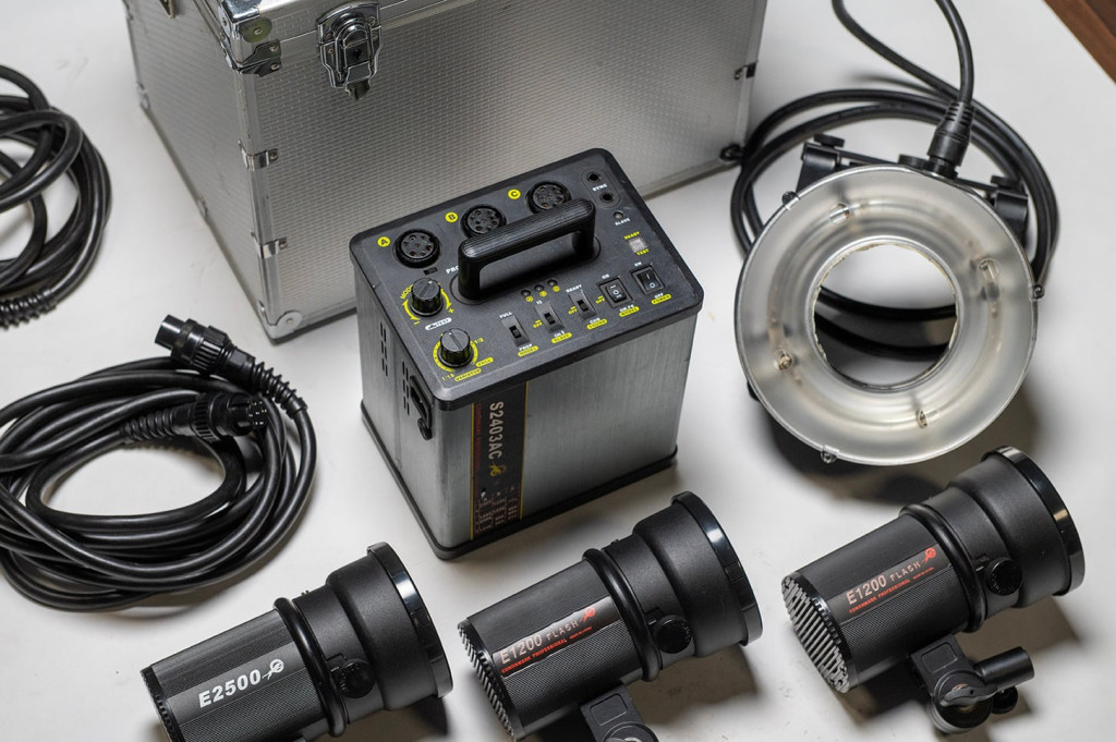 Generátor (S2403Ac), három darab vakufejjel és egy körvakuval, kofferrel.Nem akkumulátoros! Normál hálózati feszültségről működő stúdió generátor.